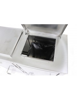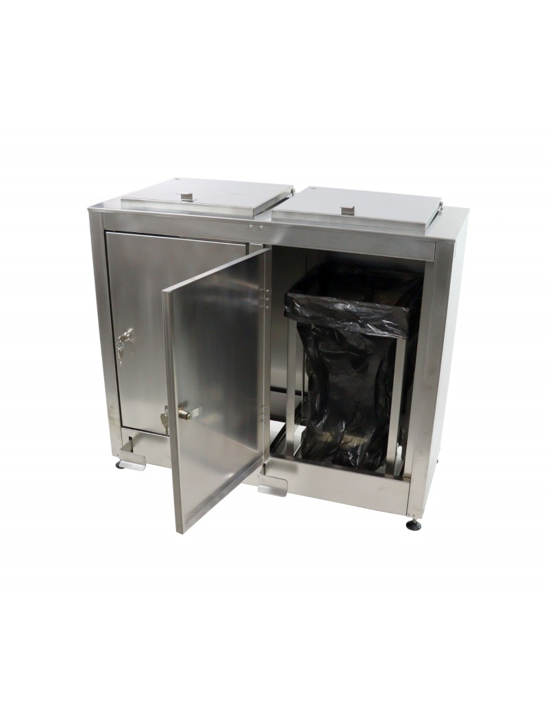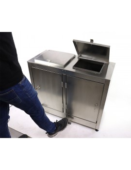 Koš vyrobený z nerezové oceli, vybavený pedálem umožňujícím otevírání víka bez použití rukou. Uvnitř koše se nachází stojan na odpadkové pytle, což usnadňuje jejich výměnu a udržování čistoty.